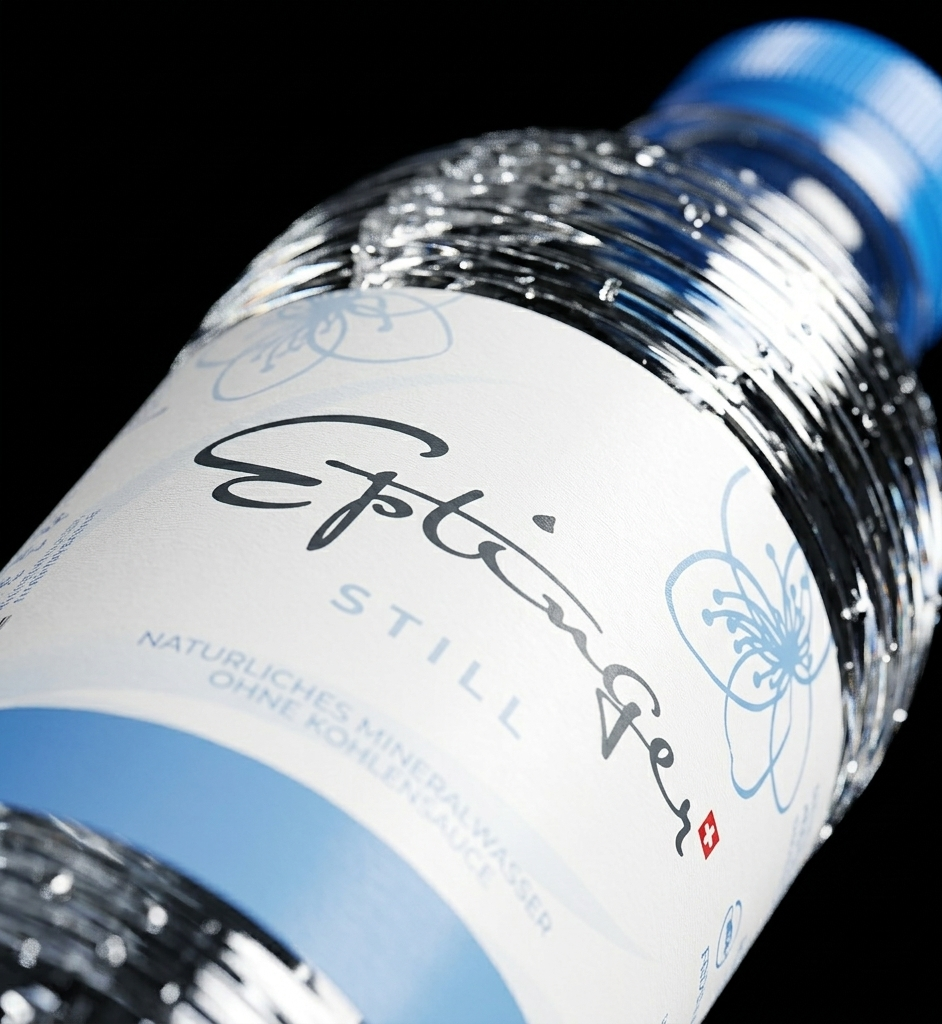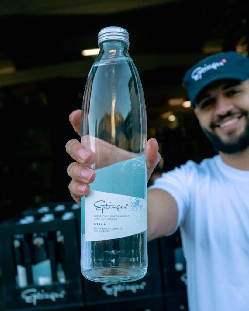 Die Eptinger Glas-Design-Flasche vereint Schweizer Mineralwasser-Tradition mit modernem Lifestyle. Elegant, nachfüllbar und nachhaltig – ein echter Hingucker auf jedem Tisch.
